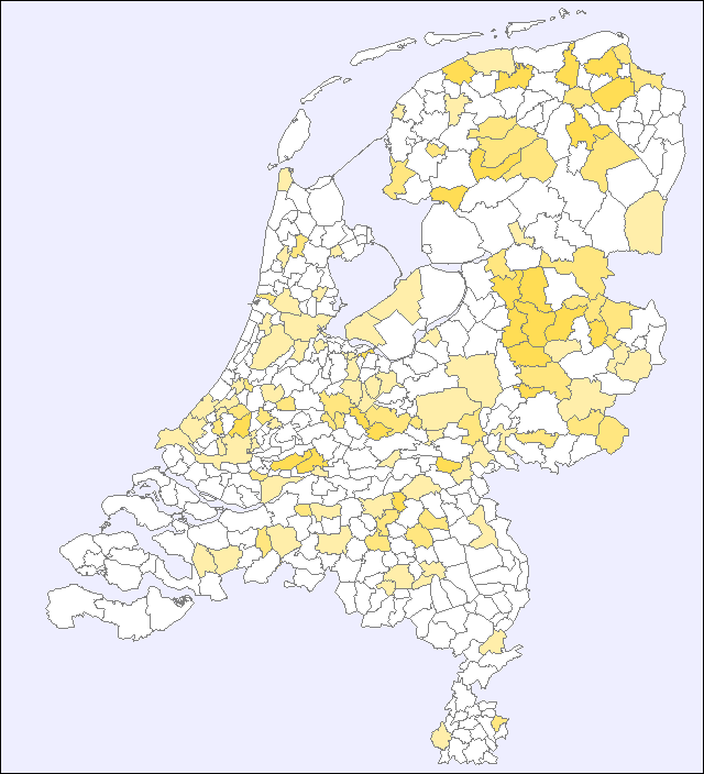 Ter bescherming van de privacy wordt alleen aanwezigheid in gemeenten met meer dan 2.000 inwoners getoond.