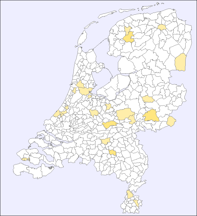 Ter bescherming van de privacy wordt alleen aanwezigheid in gemeenten met meer dan 2.000 inwoners getoond.