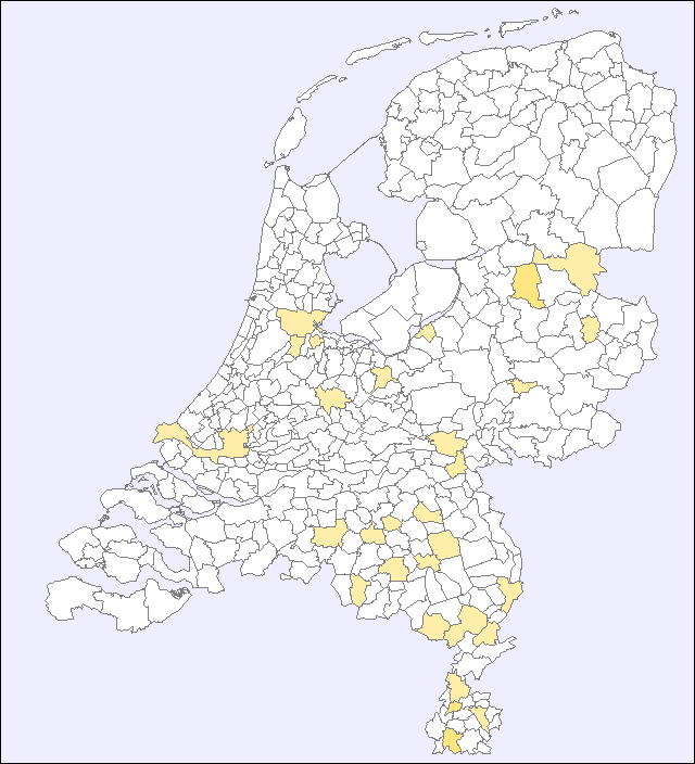 Ter bescherming van de privacy wordt alleen aanwezigheid in gemeenten met meer dan 2.000 inwoners getoond.