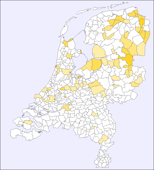 Ter bescherming van de privacy wordt alleen aanwezigheid in gemeenten met meer dan 2.000 inwoners getoond.